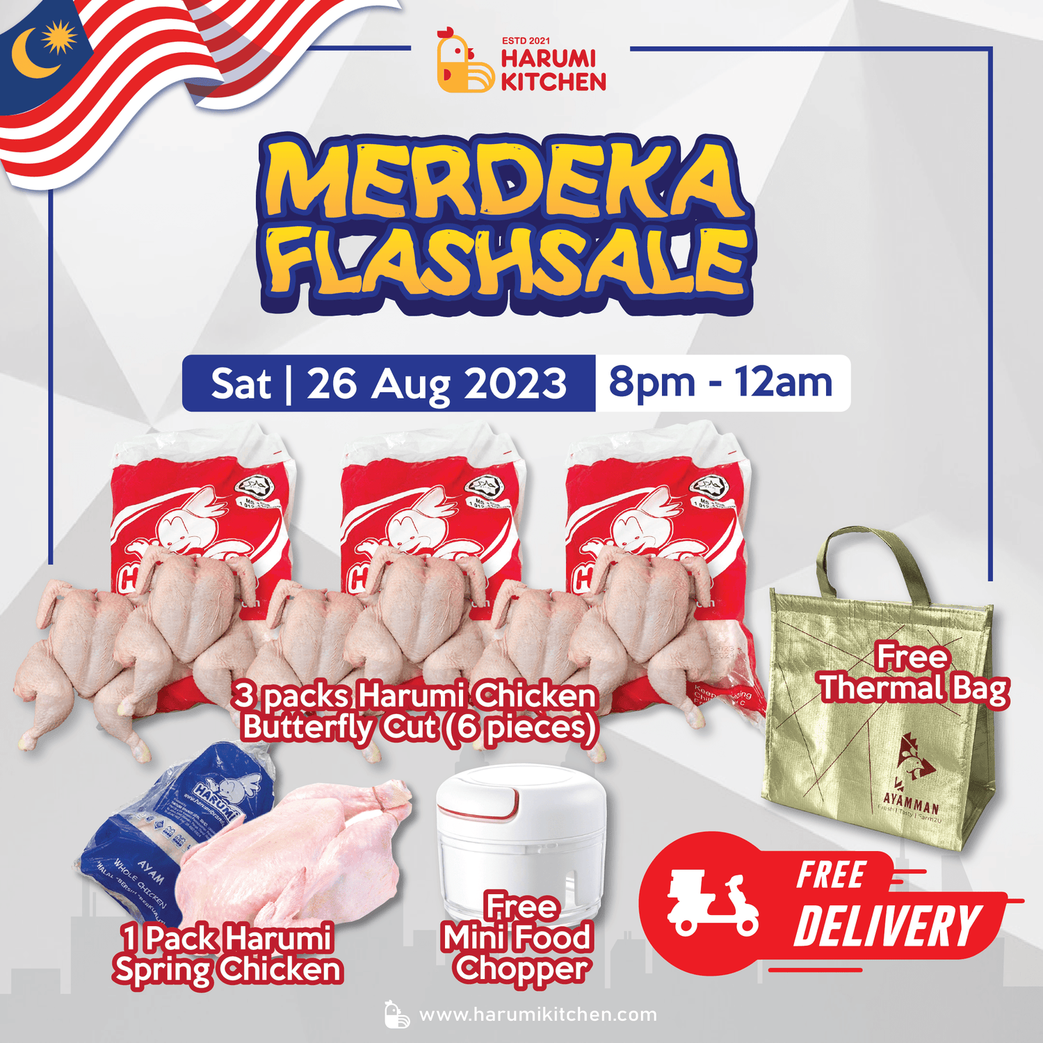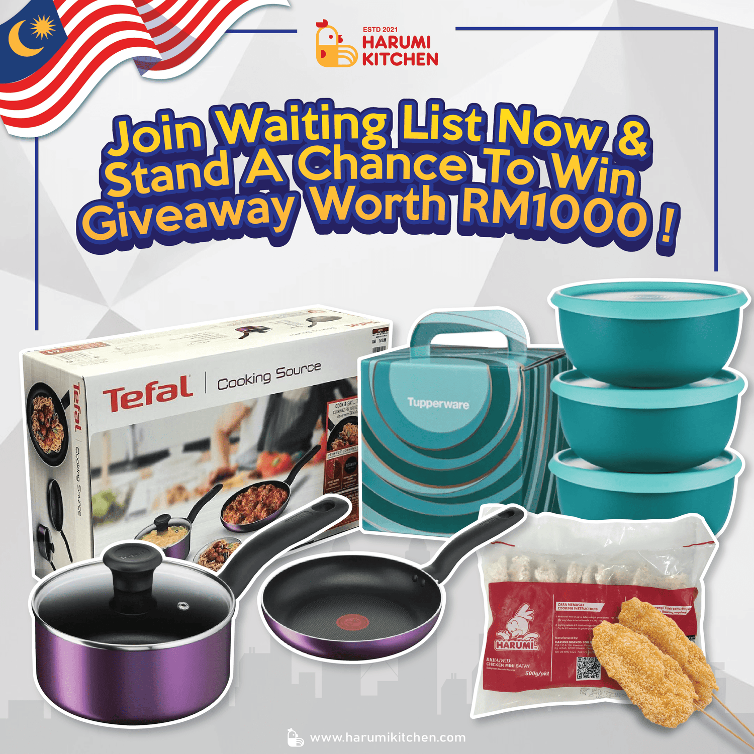 - Purchases can only be made on 26 August 2023, exactly at 8.00pm until 12.00am (4 hours only) on the website www.harumikitchen.com or Harumi Homeniaga Ejen2u website (for Homeniaga Agent only).